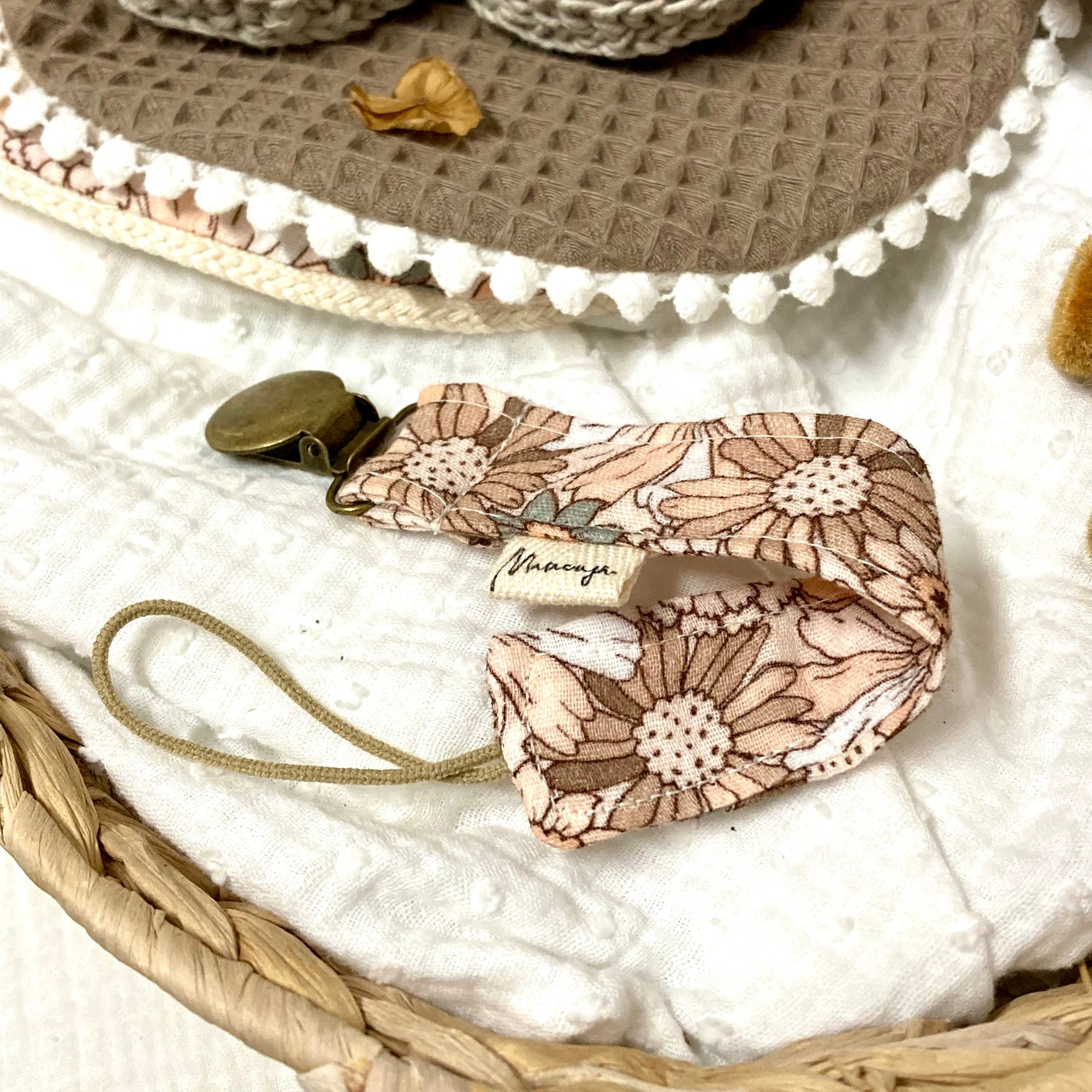 Fita de Chupeta Flores Rosa e Castanho