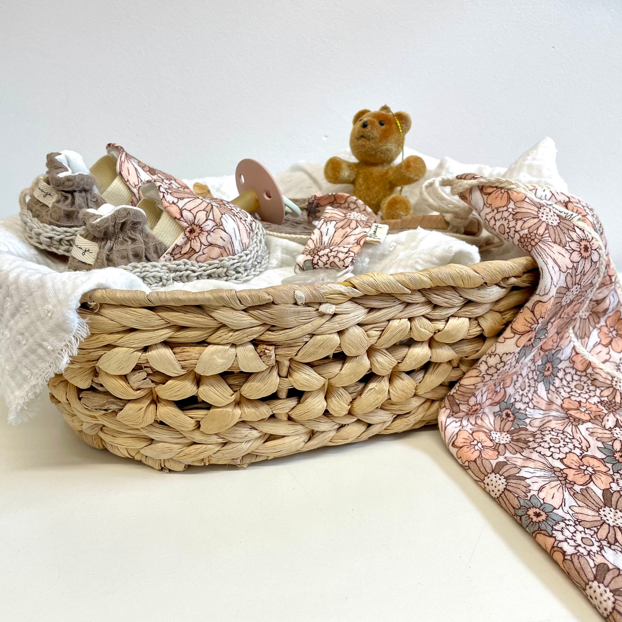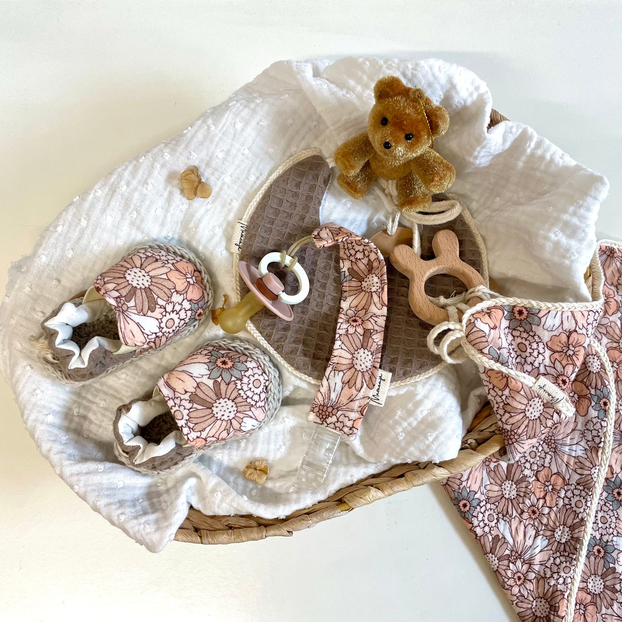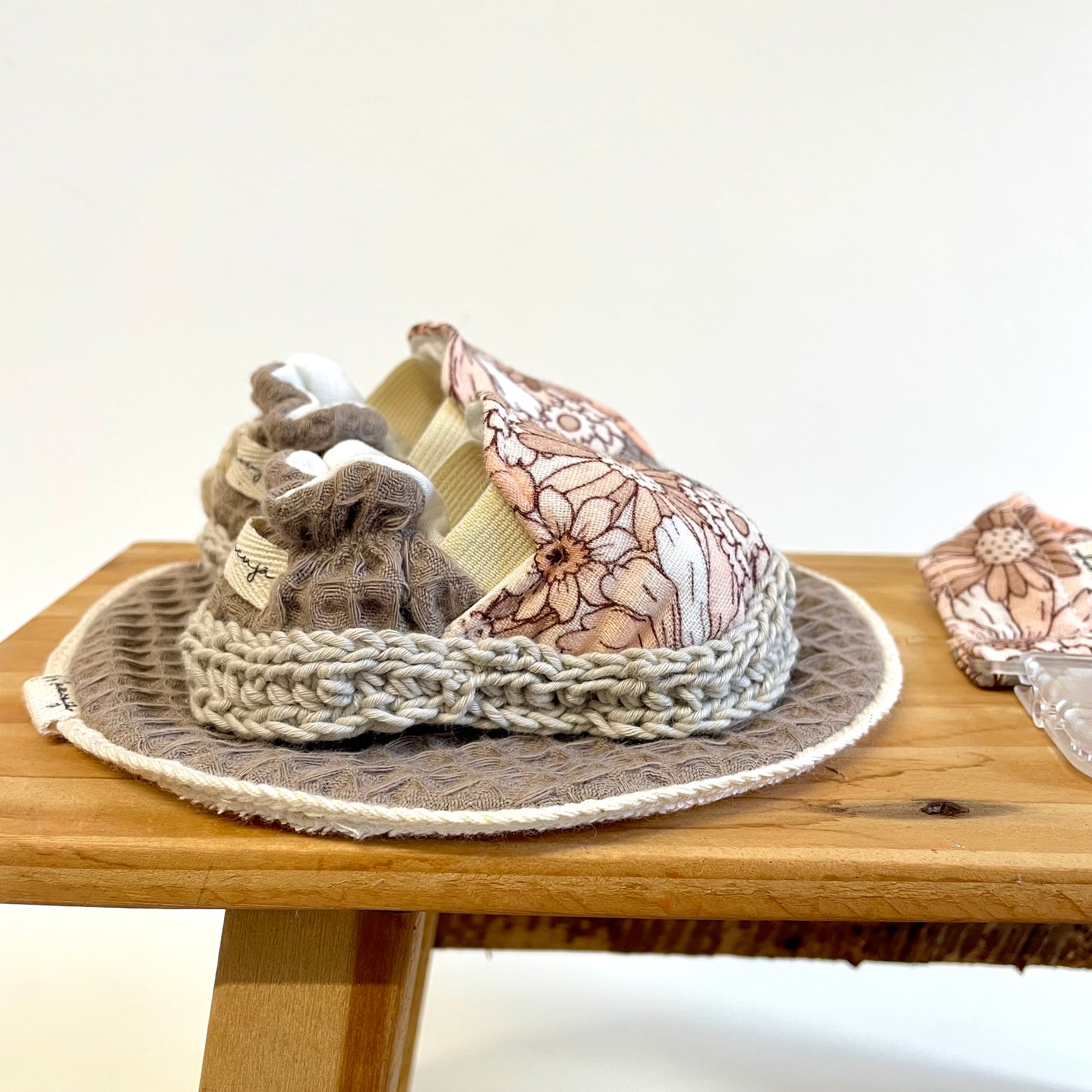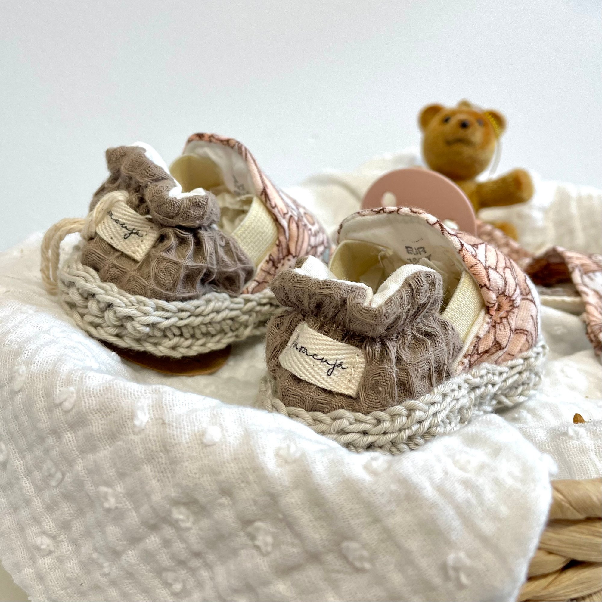 Sapatinhos Flores Rosa e Calcanhar Waffle Castanho