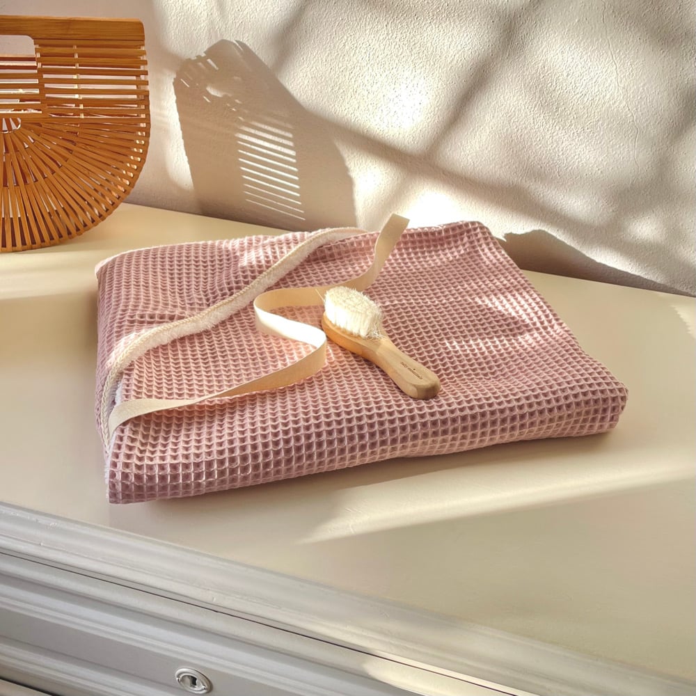 Toalha de Banho Avental em Waffle Rosa Maos-livres